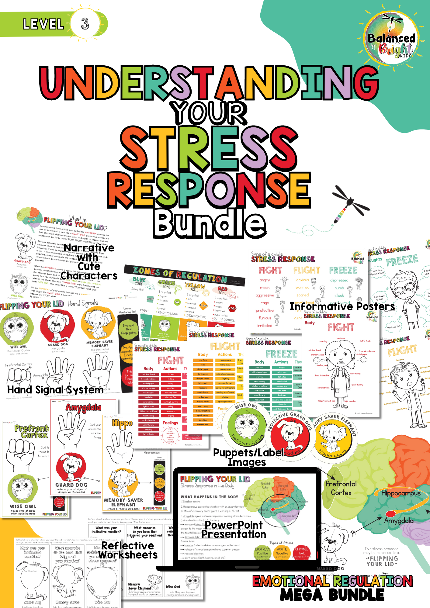 A 'story' using these animals as characters is a cute way to visualise the events happening in the brain when calm or stressed. Hand signal posters & puppet prints are included to support understanding of stress response in the brain kinaesthetically which may also be used as a classroom management tool to assist students to communicate their ability to cope with activities that may heighten their emotions (eg introducing a new concept or skill, preparing for an oral presentation, attending a loud or quiet event such as assembly where students may be overstimulated or require movement).
