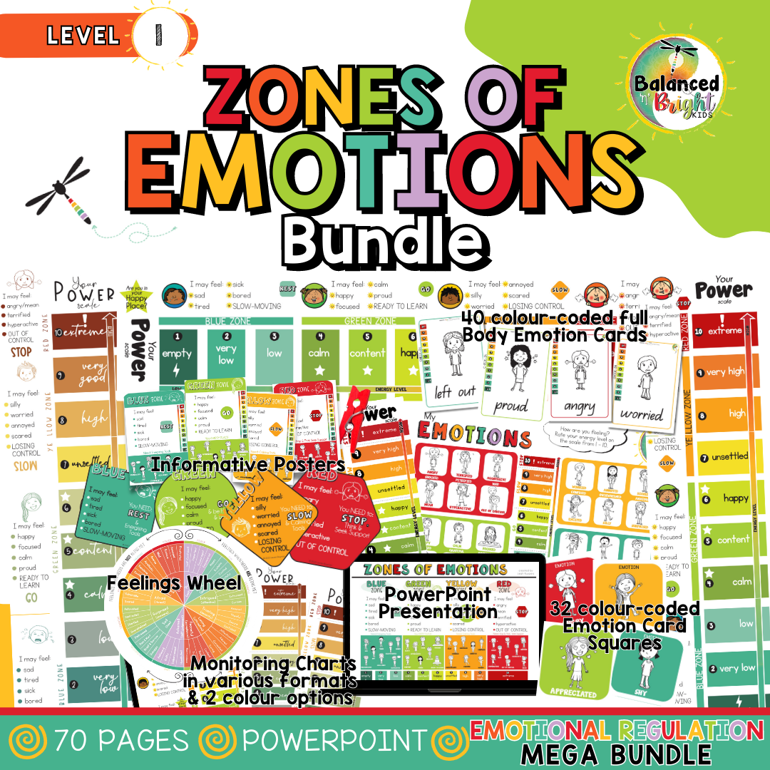 Our Zones of Emotions pack is perfect to empower children to connect to self and connect to others. Use it as a positive classroom management resource or for parents to monitor feelings and emotions at home. They will build awareness of how emotions look and feel in their bodies and mind and gain awareness of when to rest, slow down or stop and ask for support in readiness to learn or participate.