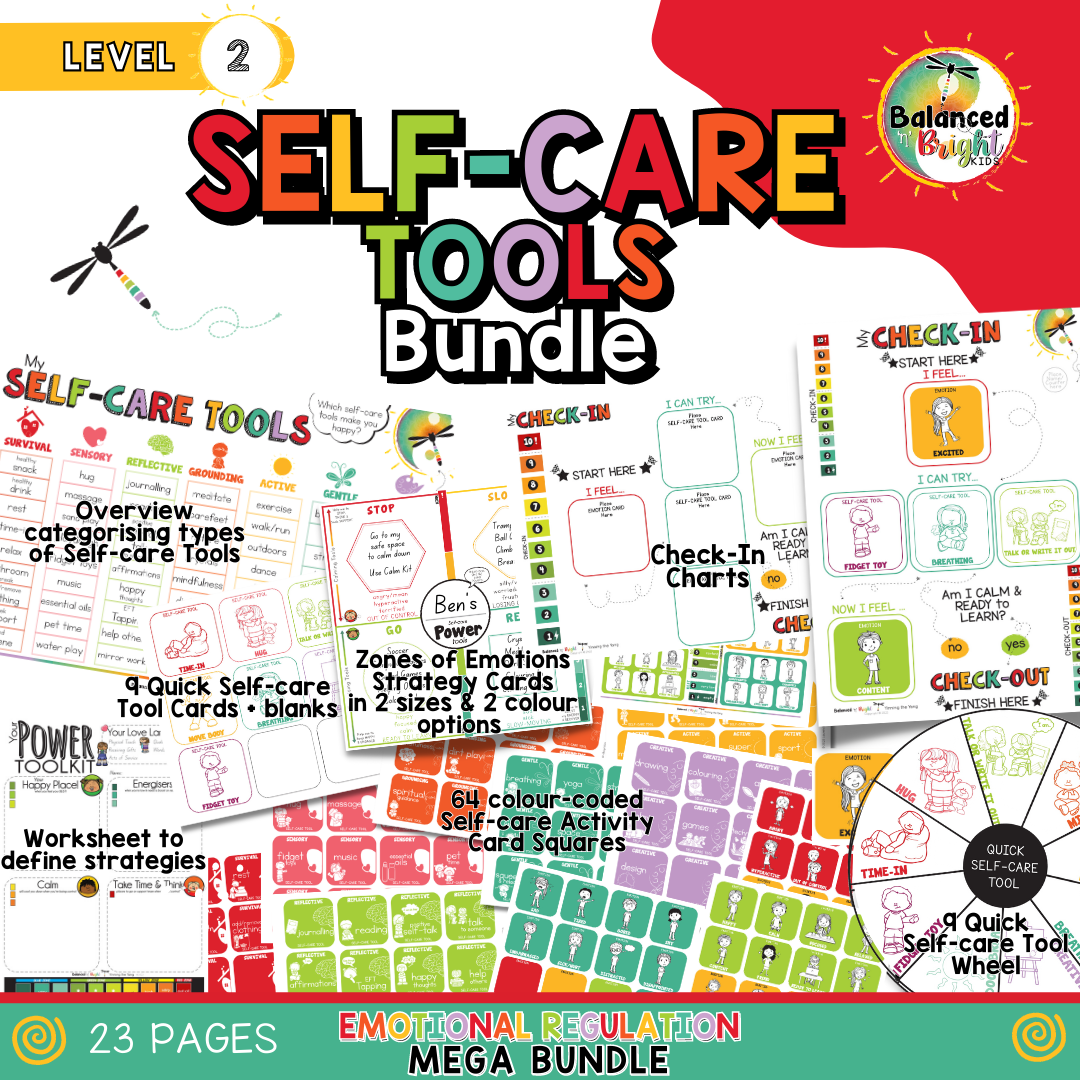 This MEGA EMOTIONAL REGULATION BUNDLE is loaded with over 111 pages of posters, cards, check-in & monitoring resources, labels, presentations, and more to teach them to identify their emotional state and develop a personalised self-care plan to meet their needs and interests – We are all unique and that’s great, right!?!