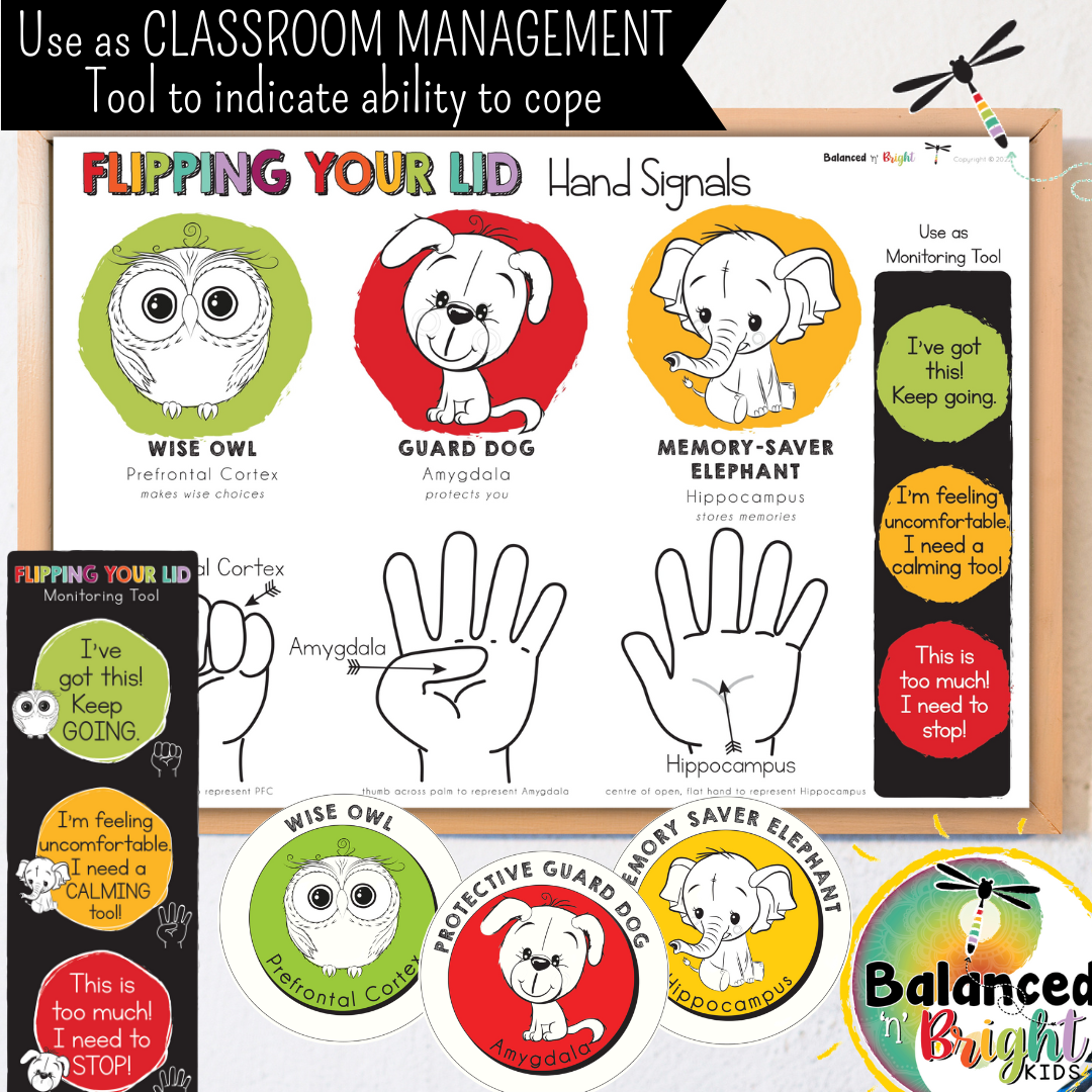 Our "Flipping Your Lid" resources in this pack not only explain our brain's & body's responses to stress (or when in the Red Zone) with information and colourful & easy-to-comprehend diagrams, but also likens the brain parts to animals that students can relate to.